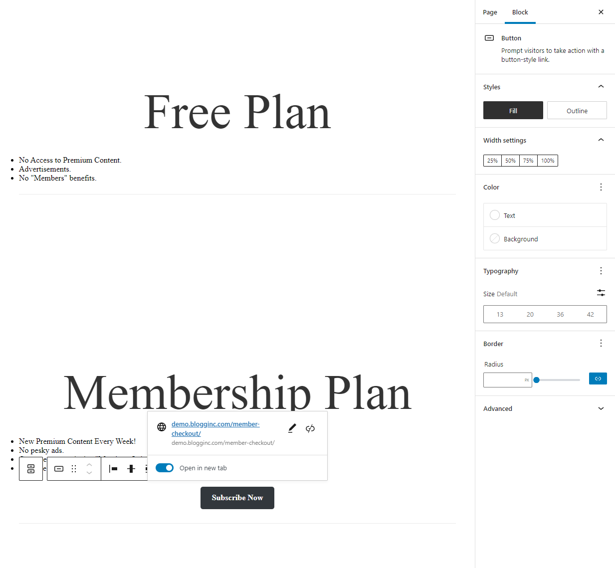 You can also set whether the subscription automatically renews or set a total number of recurring payments. In addition, you can charge users a sign-up fee. This also works great if you want to offer a free trial for your membership plan.