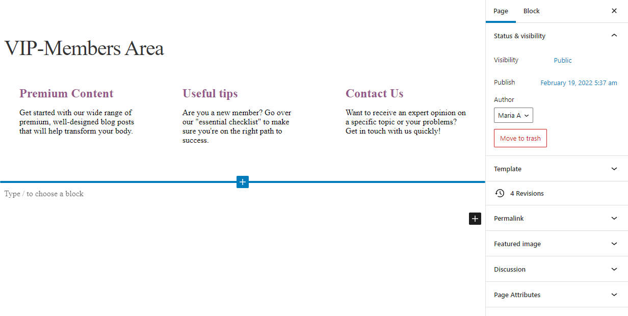 It’s also a great idea to create a members-only area on your WordPress site exclusive to users who subscribe to your membership program. To do this, create a new page by navigating to Pages → Add New.